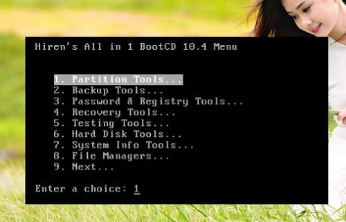 Bước 1: Để thực hiện được theo phương pháp này thì bạn phải cần ngay một công cụ cứu hộ cho máy tính. Đó chính là một chiếc một đĩa Hiren’s boot hoặc một USB Hiren’s boot cũng ok nhé.