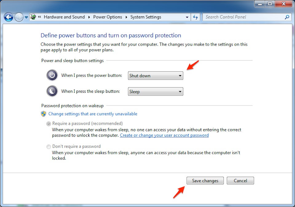Bước 5: Trong mục When I press the power button chọn ngay Shut down .