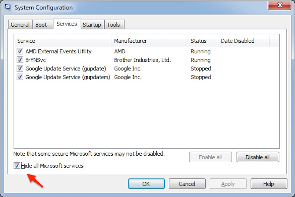 Bước 3: Ô cửa sổ System Configuration hiện ra, chuyển qua Services rồi ấn chọn Hide all Microsoft services ở góc bên trái ô cửa sổ.