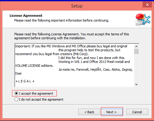 Tiếp đến, hệ thống sẽ đưa ra một bảng với các điều khoản và điều lệ của phần mềm này để tiếp tục bạn nhấn vào I accept the agreement như hình khoanh đỏ ảnh minh họa bên dưới