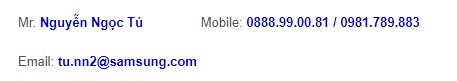 Những ứng viên nộp hỗ sơ sẽ được xét tuyển và đi làm theo sự bố trí của công ty samsung. Thêm vào đó, những ứng viên nữ muốn ứng tuyển vào nhân viên sản xuất có thể gọi đến những số điện thoại phía dưới để hỏi thêm về địa điểm và thời gian phòng vấn