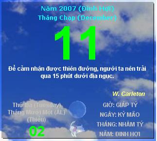 Đây cũng là một phần mềm do tác giả người Việt viết ra (Phạm Văn Hải). Phần mềm này cũng giúp bạn tra cứu lịch âm và dương; nó còn hiển thị cho bạn thấy mức độ tròn hay khuyết của mặt trăng; bạn còn có thể chỉnh sửa hay thay đổi các ngày đặc biệt, hẹn lịch báo giờ. Ngoài ra phần phần mềm này cũng được coi như là nhật ký điện tử vì nó giúp bạn ghi chép lại những điều quan trọng hoặc những việc trải qua trong ngày. Thêm nữa bạn có thể chỉnh ảnh nền, các câu thơ, tục ngữ hiển thị trong lịch theo những gì bạn muốn.