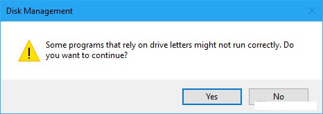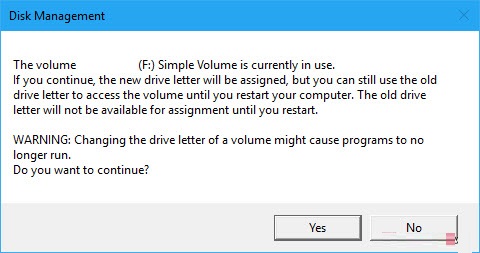 Tiếp theo sẽ tiếp tục có một bảng thông báo khác hiện lên đại loại là nó sẽ ảnh hưởng đến những phần mềm đang hoạt động trên ổ đĩa mà bạn đang muốn thay đổi ký tự này. Và bạn có muốn tiếp tục không ? nhấn chọn Yes là xong
