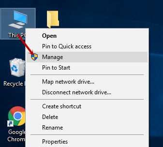 Việc thay đổi ký tự thì khó khăn hơn một chút ( vẫn áp dụng được với các hệ điều hành windows 10, windows 8, windows 7 và windows xp nhé ) . Để thực hiện các bạn trở về màn hình desktop click chuột phải vào My Computer ( trên win 10 thì có tên là This PC và chọn Manage như hình ảnh minh họa bên dưới