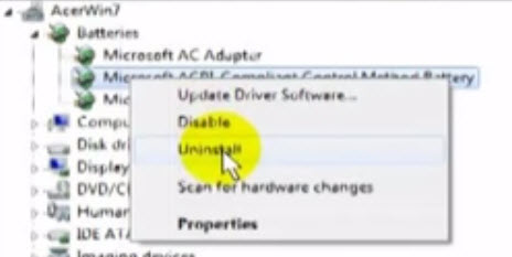- Đối với trường hợp pin laptop bị thiếu driver điều khiến thì các bạn có thể kiểm tra và khắc phục luôn bằng cách vào Device Manager và chọn Batteries. Tại đây bạn nhấn chuột phải và chọn Uninstall ở Microsoft ACPI-Compliant Control Method Battery.