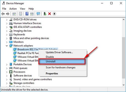 Bước 3 : Tiếp theo nếu không thấy có lỗi lầm gì thì bạn tiến hành nhấn Uninstall vào card mạng mà bạn đang sử dụng như hình ảnh minh họa bên dưới