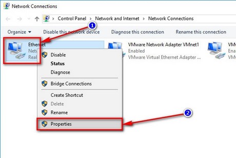 Bước 2 : Tiếp theo bạn nhấn vào cửa sổ mạng internet mà mình đang kết nối nhé và chọn Properties giống như ảnh minh họa bên dưới