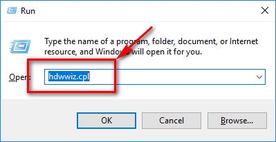 Bước 1 : Đầu tiên bạn nhấn tổ hợp phím Windows + R để mở bảng Run. Sau đó nhập lệnh hdwwiz.cpl như hình minh họa bên dưới