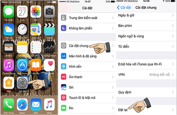 Nếu đang sử dụng điện thoại Iphone hay nói khác đi là các thiết bị sử dụng hệ điều hành iOS, bạn chỉ cần vào Settings (Cài đặt) chọn General (Cài đặt chung) rồi tìm chọn mục Reset (Đặt lại).