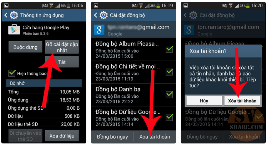Cũng có thể việc CH Play gặp lỗi không hoạt động là do chính tài khoản của bạn tác động vào phần mềm này. Để sửa lỗi này , bạn chỉ việc xóa tài khoản đó đi và đăng nhập lại. Thực hiện như sau :