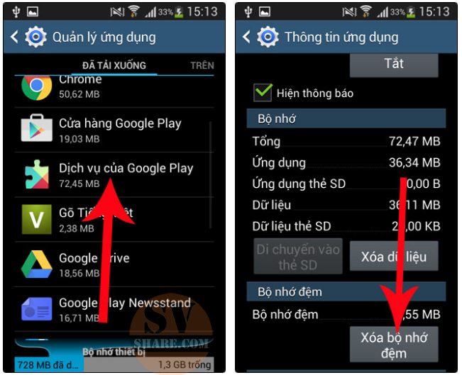 Xóa Cache điện thoại Google Play không hoạt động