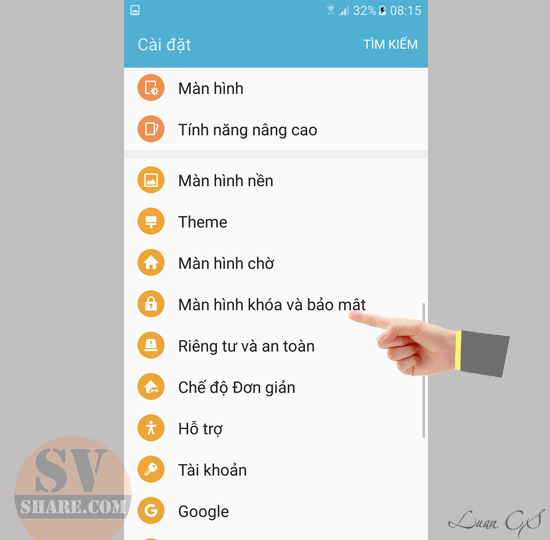 Bước 1 : Vào phần cài đặt tìm đến màn hình khóa và bảo mật