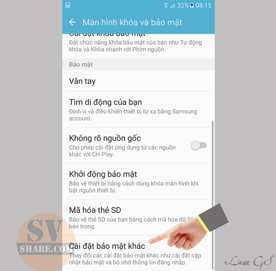 Bước 2 : Nhấn vào tính năng cài đặt bảo mật khác