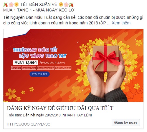 4. Trong bài viết quảng cáo facebook cần có nút kêu gọi hành động ( CTA )