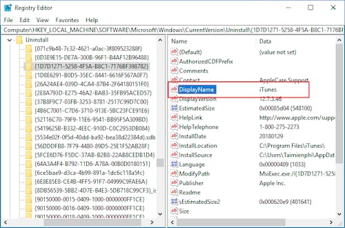Bước 3: Bạn ấn vào mục Display Name ở ô bên phải để xem tên của chương trình mình cần gỡ bỏ.