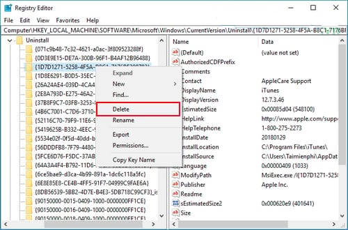 Note: Có thể một số chương trình trong Program and Features bạn lại không thấy nó hiển thị ở Registry. Nguyên nhân chính là chương trình bạn cài đặt 32-bit trên Windows 64-bit. Bạn có thể điều hướng theo đường dẫn sau để tìm các phần mềm và xóa đi (chọn Delete).