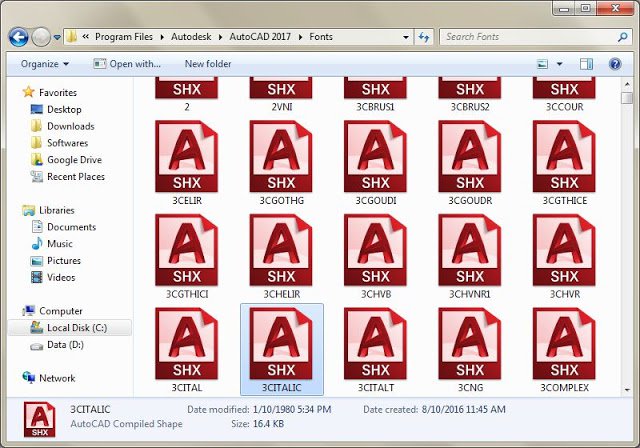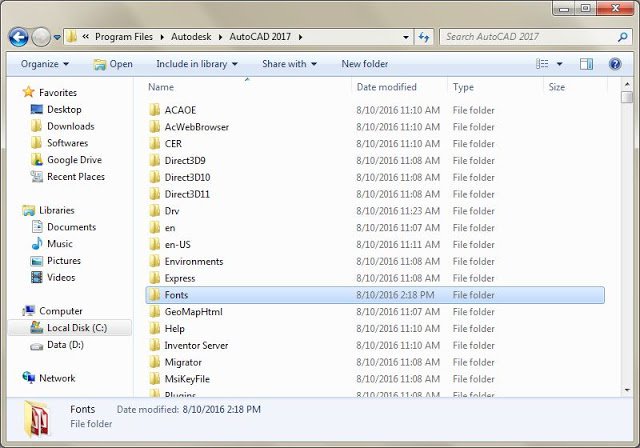 - C:\Program Files\Autodesk\AutoCAD 2014\Fonts. ( đường dẫn mặc định danh cho bản 2014 ở hệ điều hành windows 32bit)
