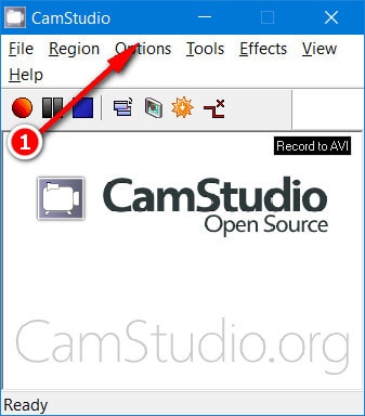 Bước 1 : Khi cài đặt xong, các bạn ở phần giao diện chính của phần mềm Camstudio nhấn chọn vào tab Options