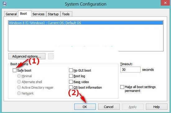 Bước cuối cùng bạn thực hiện lại giống với bước thứ nhất là vào msconfig và vào tab Boot xóa bỏ tích chọn Safe Boot . Sau khi khởi động lại máy bạn sẽ có thể đăng nhập được skype như bình thường