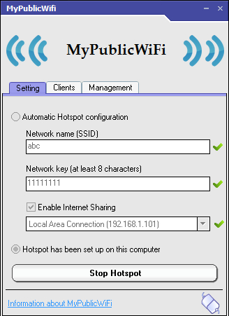 Đây là phần mềm phát wifi thứ hai mà chúng mình muốn giới thiệu tới bạn. MyPublicWiFi là một phần mềm nhỏ gọn và phát Wifi khá rất tốt, rất nhiều bạn đã test thử và thấy tốc độ khá ổn định đó. Phần mềm này còn hỗ trợ tính năng theo dõi và quan sát những máy chạm, xuất ra file nhật ký người sử dụng. Điều này hoàn toàn bảo mật cho người sử dụng nó.