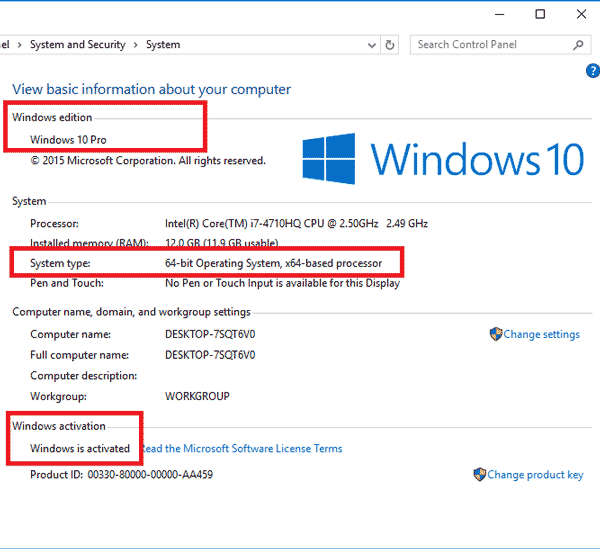 Nếu như Windows edition không phải Win 10, và Windows Activation báo not actived thì ngay sau khi cài đặt Windows xong sẽ mất bản quyền. Cần xem loại System type là 32 bit hay 64 bit để tải bộ cài đặt ISO phù hợp.