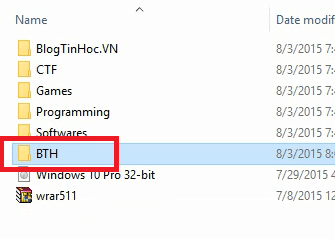 Tệp cài đặt Win 10 được đặt ở ngoài cùng của phân vùng ổ cứng. Nên đổi tên tệp ISO để dễ nhớ, dễ thực hiện các bước sau. Khi đổi tên tệp xong thì nhấp chuột phải vào tệp ISO rồi nhấp vào Extract to Windows 10 rồi thay đổi tên thư mục mới này bằng BTH như dưới đây: