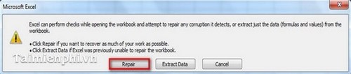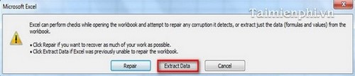 Nếu như file excel đó vẫn bị lỗi, bạn chọn Extract Data để khôi phục lại toàn bộ dữ liệu.